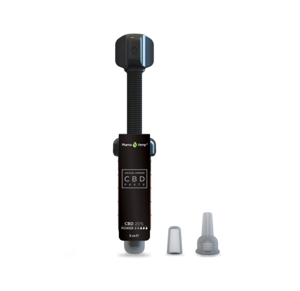 PharmaHemp® VEGAN AMBER CBD PASTE può essere acquistato in un dispenser a siringa da 5 ml.